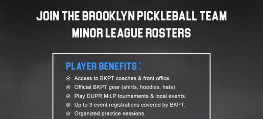 Brooklyn Pickleball Team (BKPT) invites you to join the first ever BKPT Minor League DUPR 12-20 (N/A to 5.5 DUPR) Rosters via the Minor League Roster membership! Take your game to the next level, rep Brooklyn, and be a part of making pickleball history!